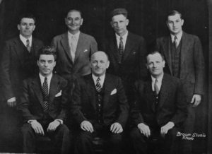 The Jugoslav Club of San Pedro Board of Directors: (first row l-r): Dinko Kovacevich (secretary), Martin J. Bogdanovich (president), S.P. Stambuk (vice-president) (back row l-r): Paul Marinkovich (director), Anton B. Jaconi (director), Jakov Despalatovich (director), Vincemt Karmelich (treasurer). (photo: Dalmatian-American Club)