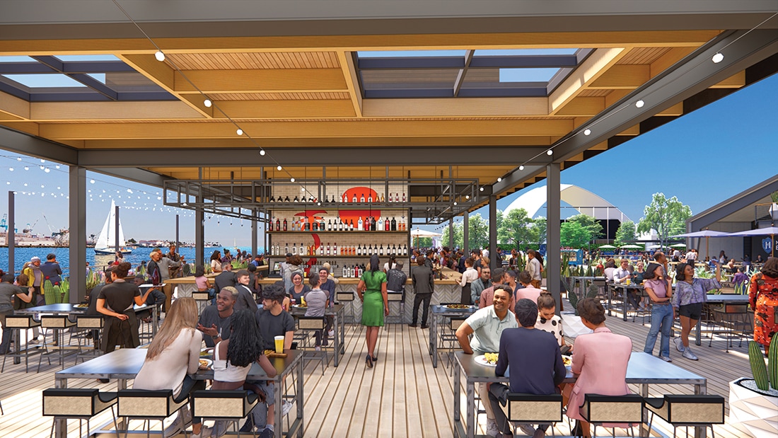 He continues, “[I love] that West Harbor is turning into this really nice, dog-friendly, kid-friendly, family-friendly project. It’s not just come, eat, and leave. It’s much more than that. Between Hopscotch, the programming, the festivals, all the things we’re going to do, it will maybe regain what Ports O’ Call once was.”