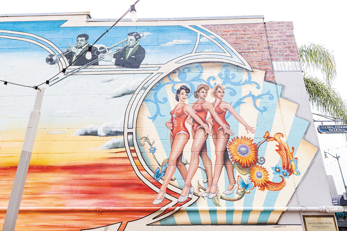 Born in Mexico City, Luis Sanchez is a fine art painter, sculptor, and muralist who painted two of our DOT boxes. Luis notes, “When looking at the history of our historic theatre, its incredible design and history, I wanted to show a tale of past, present, music, dance, movement, celebration of the arts, as well as the diverse culture of San Pedro. I also used some of the applied design elements from the interior of the Warner Grand.”