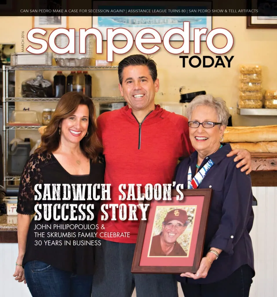 The Sandwich Saloon’s story began with a dream. Peter Skrumbis, a Westchester High School history teacher, and his wife Adrienne had always been drawn to small business ownership. In 1986, they heard through the San Pedro grapevine that a small sandwich shop on Gaffey, between 8th and 9th streets—open since 1977 and famous for its window painting of a cowboy clutching a sandwich and a pretty lady—was for sale.