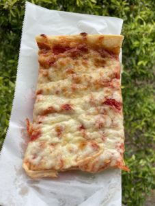 I mainly stop by Joseph’s for their rectangular-shaped slices of cheese pizza which are easily recognizable to those who have an affinity for it. The ingredients are simple: a tasty dough, reliably tangy red sauce with a hint of oregano, and plenty of cheese. Regulars know that the early bird gets the worm here. Some may call this elusive pizza because, due to its popularity, it’s not always guaranteed that there might be any available. The truth is locals don’t visit Joseph’s for lunch; we buy their pizza for breakfast early in the morning.