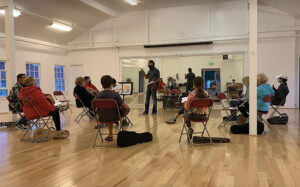 Despite opening shortly before the pandemic, the studio’s student body tripled during the COVID lockdowns, a feat Daulton attributes to a strategy of using flyers and an improved website to get the word out. But the reviews from Daulton’s students tell a different story. “It’s just really a fun class, and there’s no judgement,” says Marty Barrera, who attends the beginner’s class. “Mr. Greg is so nice. If you miss a class, or can’t remember what you’re working on, he tells you right away,” she adds. Elliot Kennedy, one of Daulton’s teaching assistants, agrees. “Mr. Greg is just awesome. He really teaches you the details, and he’s such a great teacher.”
