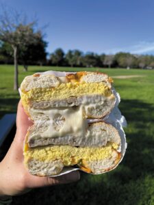 There are several breakfast and regular sandwich options on the menu. If lox is not your vibe, then I suggest the breakfast bagel made with egg, meat, and cheese. I like ordering mine with sausage and requesting my bagel be toasted. I also like the new consistency of the fluffy and airy eggs; this is another improvement I have noticed.