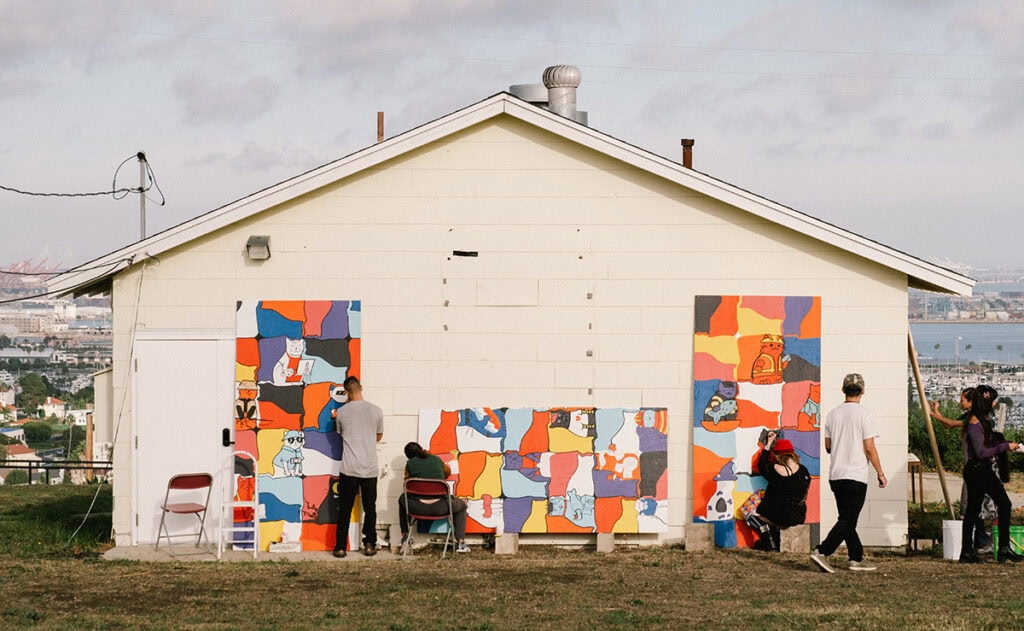 The 72’ x 15’ LAMI mural is the third community engagement mural in our Adventures in Public Art program and included two community painting days, with over 60 locals helping paint it. Generous contributions from the Port of Los Angeles Community Grant Program, a grant from the LA County Creative Recovery Program, and numerous private donations funded it. This mural also has a Snapchat Augmented Reality activation.